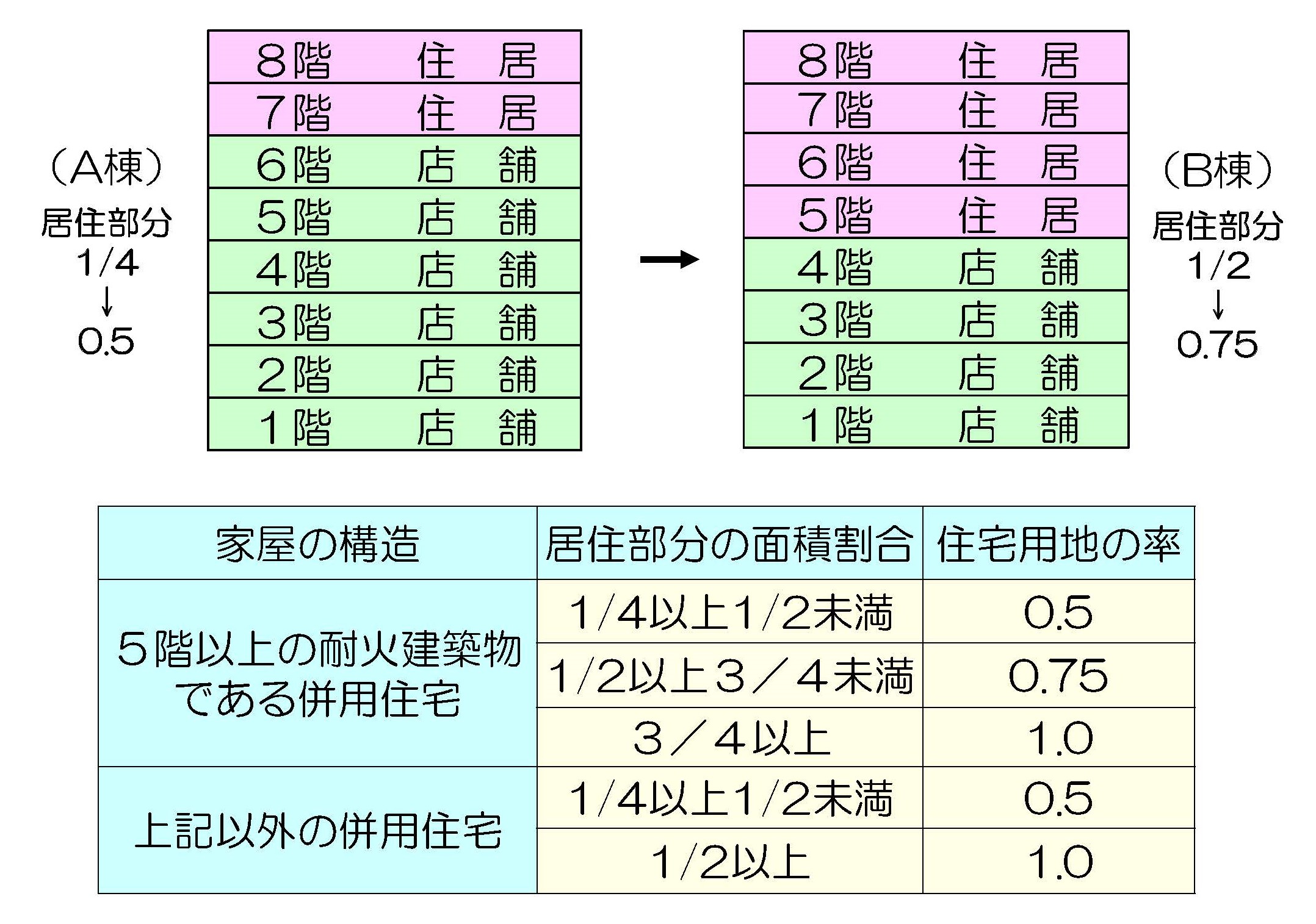 それでは、住宅と店舗・事務所等が混在している複合ビルの敷地では小規模住宅用地はどうなるのでしょうか。