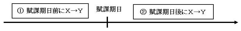 ここに、所有者XからYに所有権移転された場合、その移転が①賦課期日前と②賦課期日後かによって違いがあります。