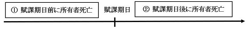 その場合も、その死亡が①賦課期日前と②賦課期日後かによっても違います。