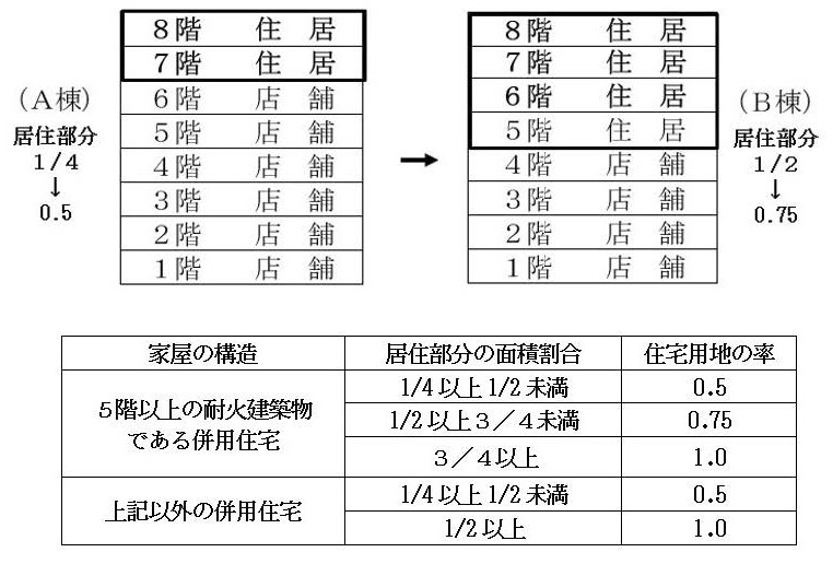 また、その家屋が「5階以上の耐火建築物」であるか「それ以外の併用住宅」かによって異なります。