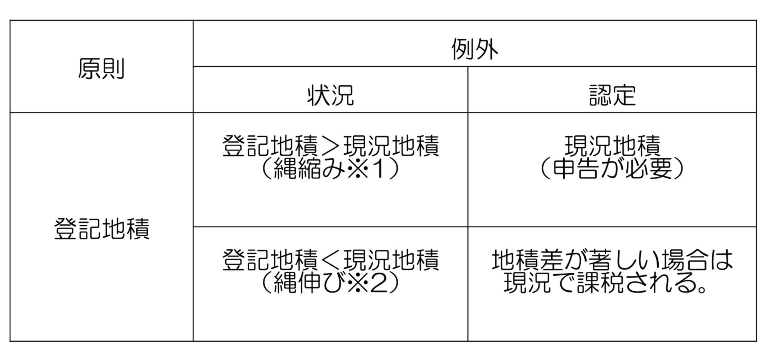 「 各筆の土地の評価額を求める場合に用いる地積は、次に掲げる場合を除き、原則として登記簿に登記されている土地については登記簿に登記されている地積によるものとし、登記簿に登記されていない土地については現況の地積によるものとする。