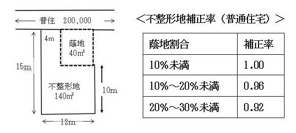 ・ 不整形地補正率 蔭地割合 22% ⇒ 0.92(B)