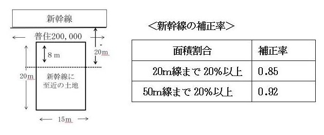 日照阻害補正、都市計画施設予定地補正、鉄道・高速道路による騒音・振動補、幹線道路による騒音・振動補正。