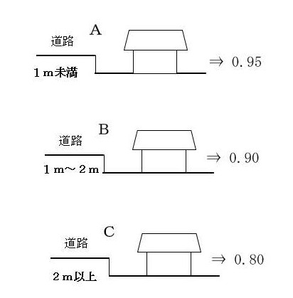 道路より低い位置にあるため、一般の画地に比べ、日照や水はけなどの状況が不良であると認められる画地です。