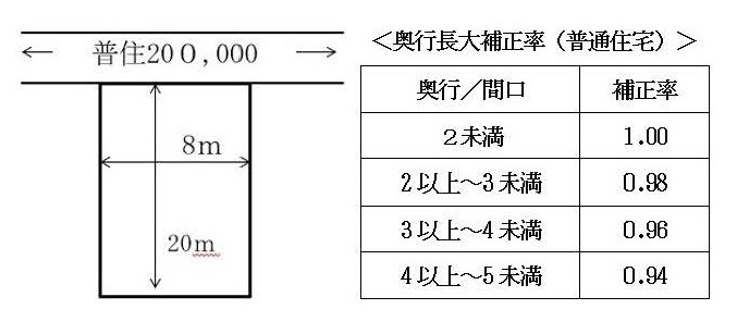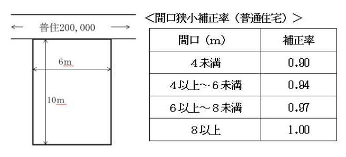 ・ 間口狭小補正率 間口4m ⇒ 0.94(A)