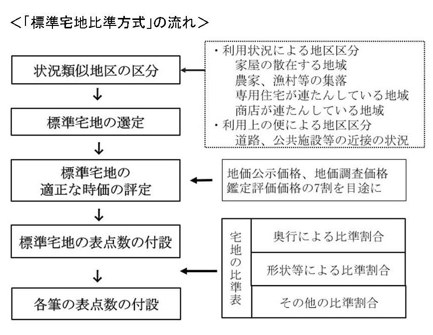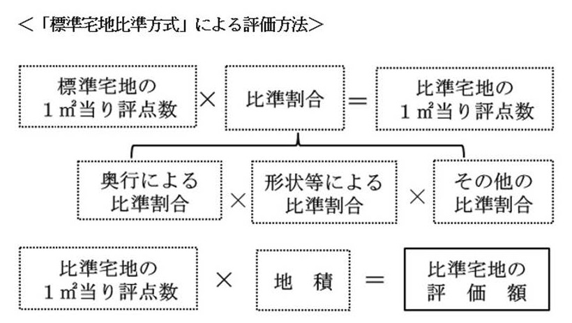 「標準宅地比準方式」とは、宅地評価の2つの方法(「市街地宅地評価法」と「その他の宅地評価法」)のうちの「その他の宅地評価法」(以下「標準宅地比準方式」)です。