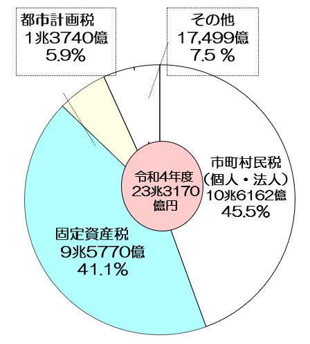 ここにあるように、固定資産税41.1%、市町村民税45.5%、都市計画税5.9%、その他7.5%となっています。