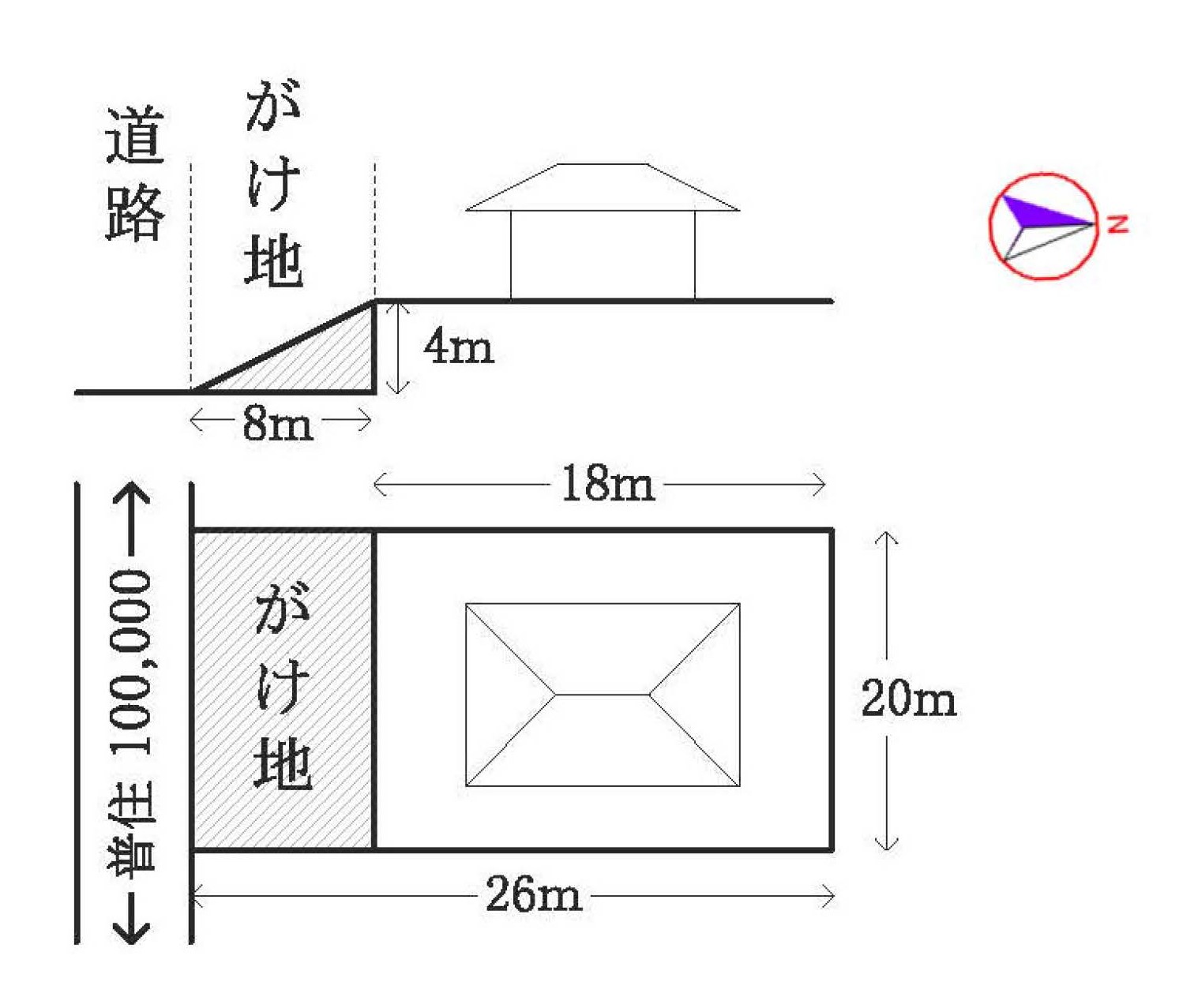 上記の「がけ地を有する宅地(例)」における固定資産税の評価額を求めます。