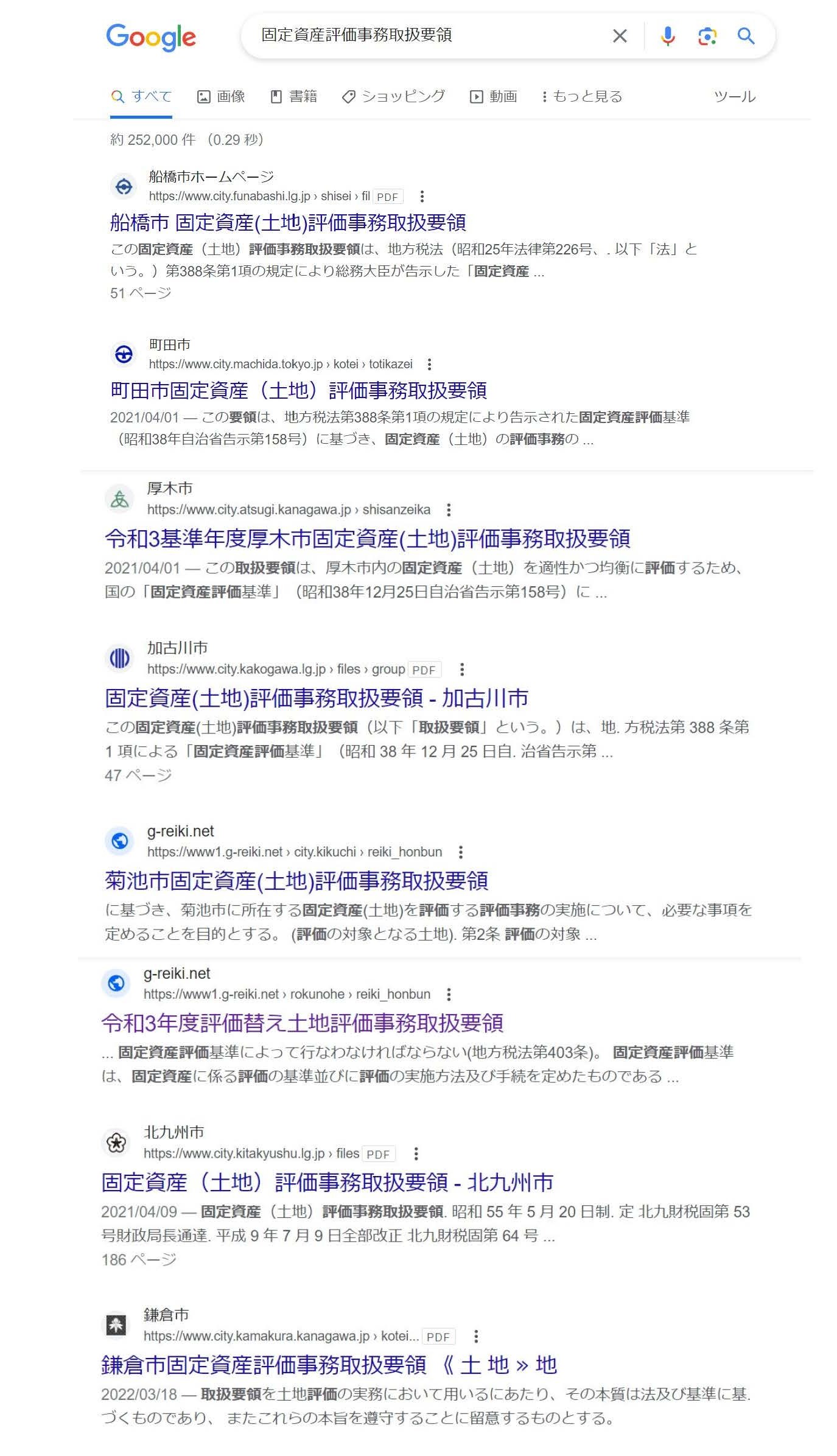 <グーグル目次(固定資産評価事務取扱要領)例>