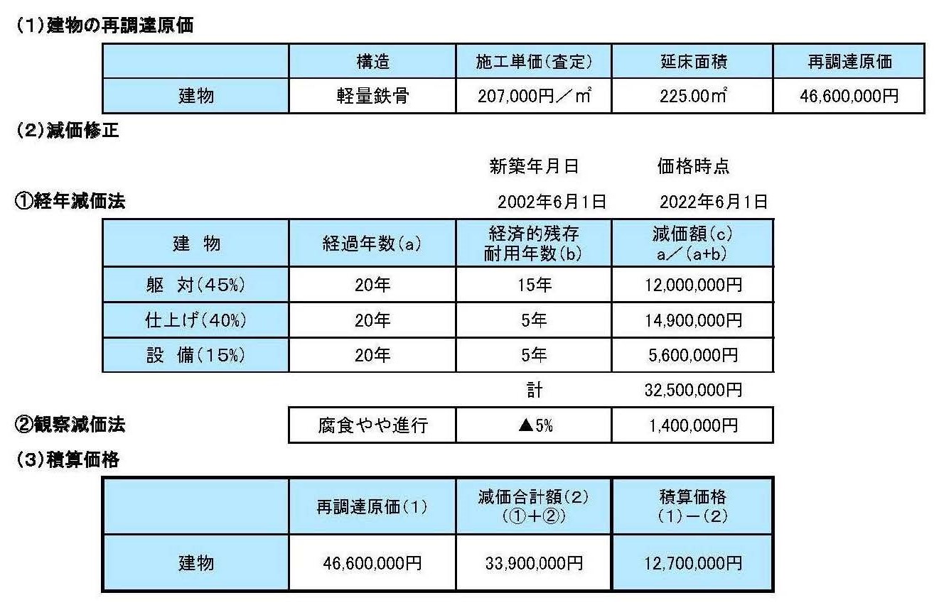 通常、不動産鑑定評価の原価法では、建物及びその敷地の場合ですが、建物のみの評価も可能です。