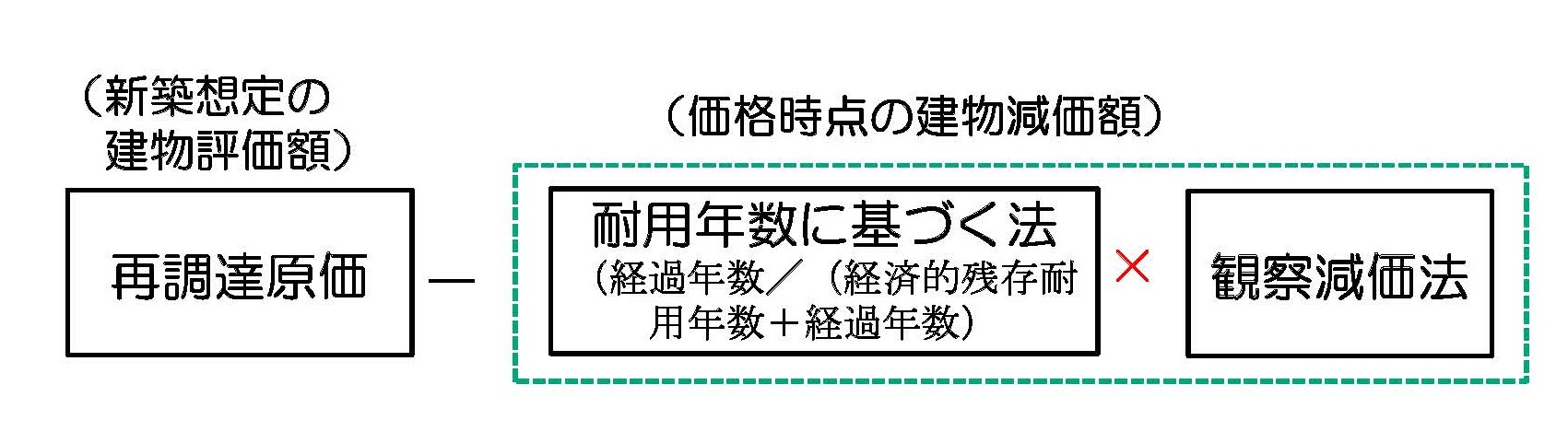 原価法による価格(積算価格)=再調達原価-建物減価額