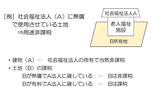 ところで、固定資産税が非課税になるのは、運営法人等が固定資産を所有している場合に限りません。土地所有者が、運営法人等の利用の用に供するために土地を無償で貸している場合、その土地も非課税になります。