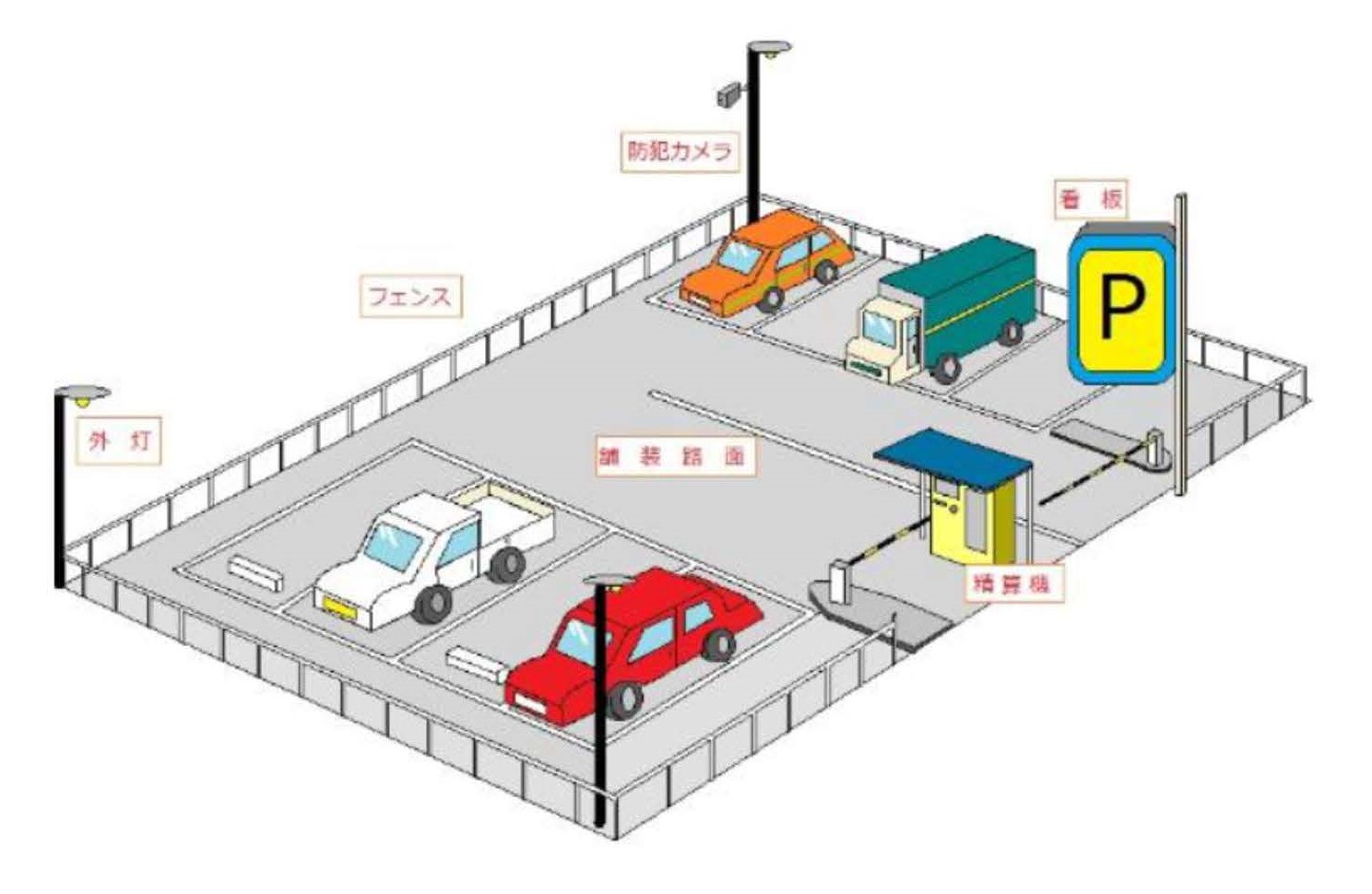 土地の有料駐車場内の償却資産の例としては、舗装路面(アスファルト、コンクリート舗装・砂利敷)、看板、精算機等の資産があり、申告・課税の対象となります。