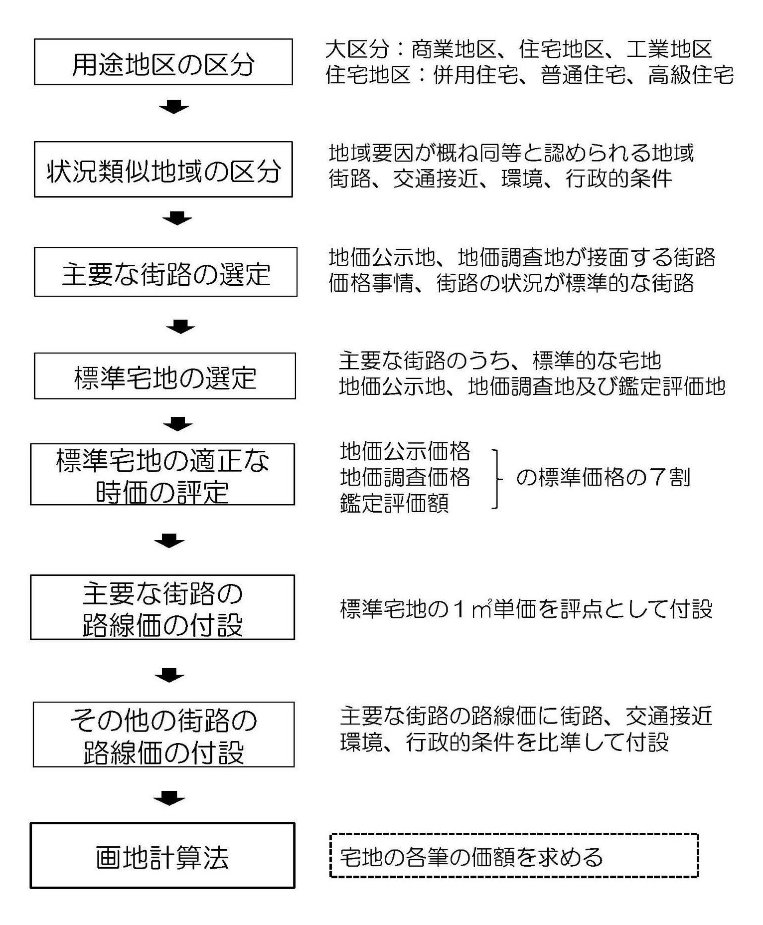 路線価方式での宅地の評価方法は、固定資産評価基準で規定されています。