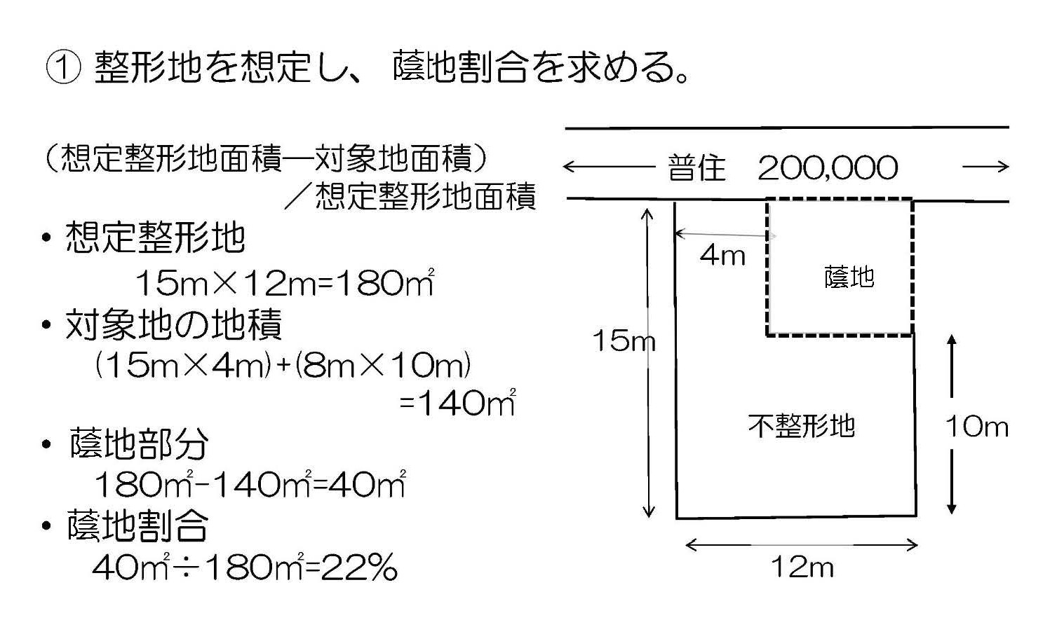 不整形地は形状から、その土地の利用効率が劣るため減価となります。