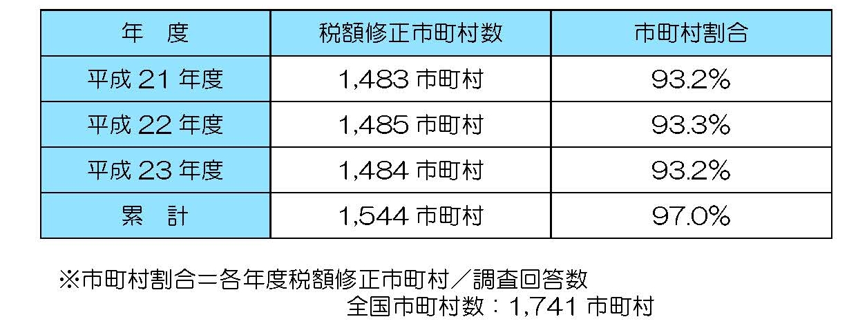 これについては、総務省が平成24年8月に発表した「固定資産税及び都市計画税に係る税額修正の状況調査結果」が参考になります。