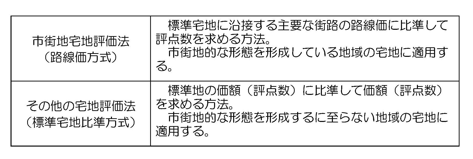 具体的には、家屋の連たん度が低く「市街地宅地評価法」(路線価方式)を適用する必要が認められない地域について適用される評価方法です。