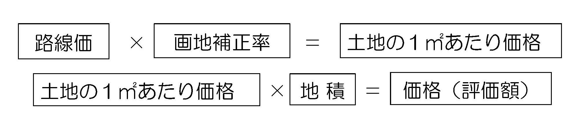 「路線価方式」における各宅地の評点数は、路線価に基づき画地計算法を適用してそれぞれの画地の単位当たりの評点数を算出し、これに各筆の地積を乗じて算出します。