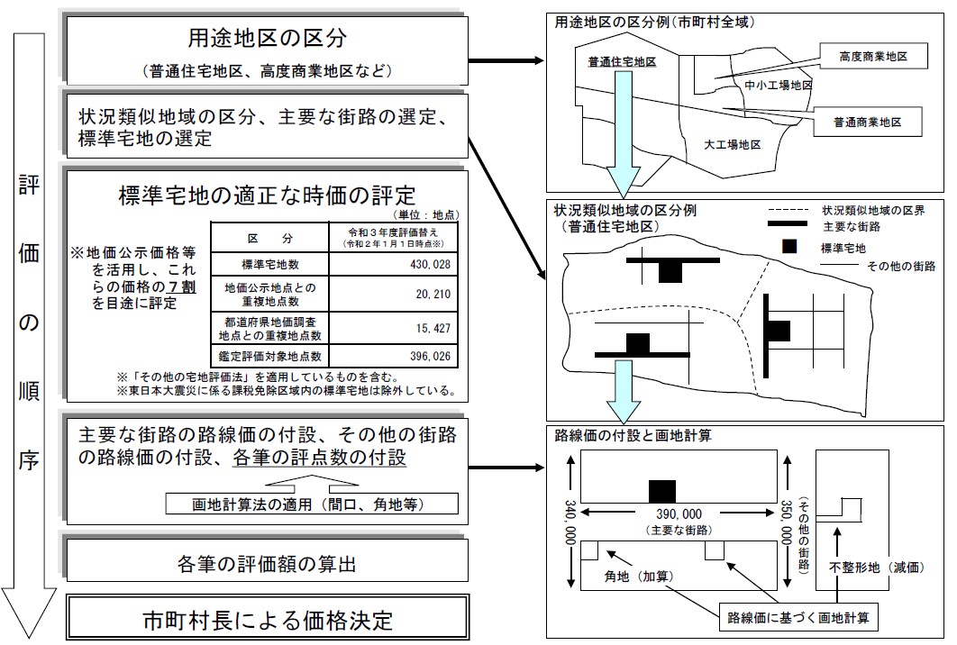 この方式は、短時間に大量の土地評価ができること、評価後の価格に大きなばらつきが出ずに公平な課税が可能であること、地域ごとの評価バランスがとりやすいこと、などの利点があります。