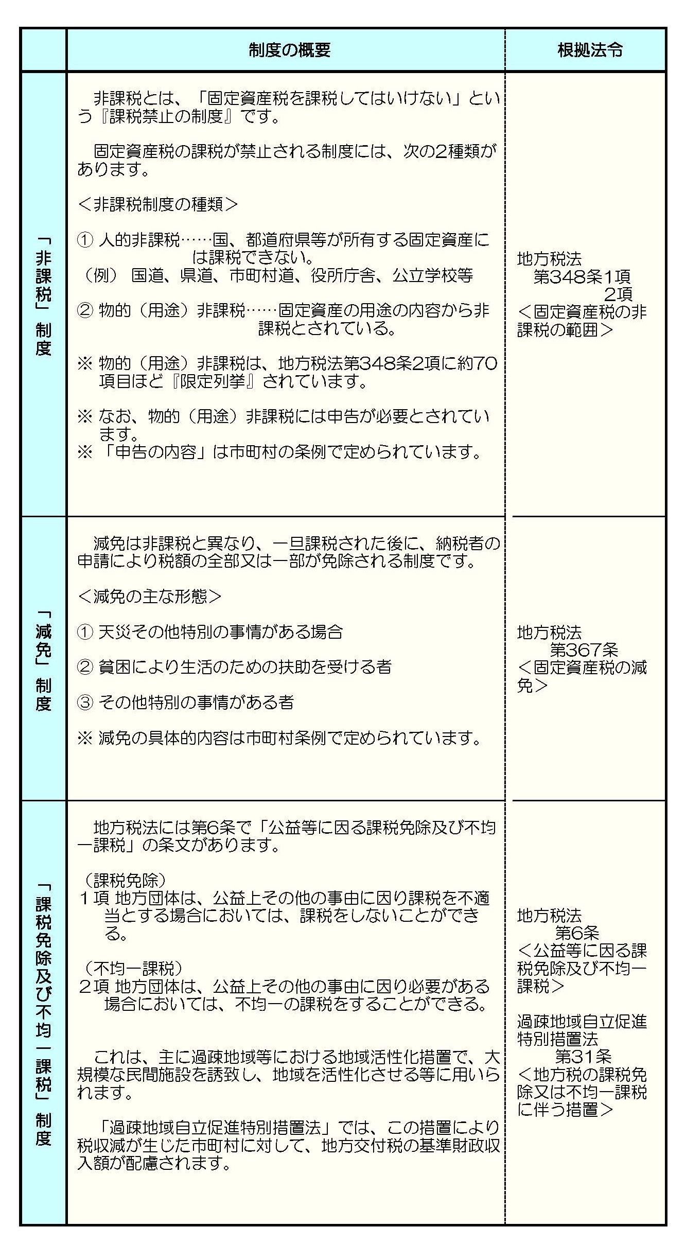 (第107号)固定資産税の「非課税」「減免」「課税免除及び不均一課税」について