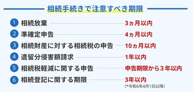 相続(又は遺贈)により財産を取得し、相続税の納税義務がある者は、相続の開始があったことを知った日の翌日から10ヵ月以内に被相続人の最寄の税務署に申告書の提出が必要となります。